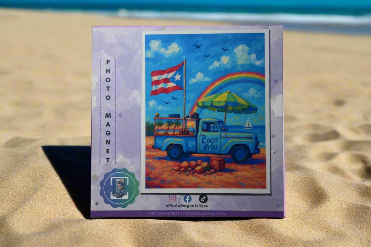 ES: Esencia Boricua es arte inspirado en Puerto Rico, transformado en pequeños foto magnético que viven en tu día a día.